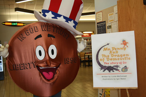 Events![]() You and your family are invited to participate in a celebration of citizenship: the National Day of Reciprocity on October 23rd at Artful Gourmet Bistro, 9433 Common Brook Road, Owings Mills, Maryland 21117 ((410) 356-2606). This free, fun, family-friendly event starts at 6pm. Lucile McConnell will be signing copies of her new book and the illustrator of Mr. Penny's story, Igor Malov, who is visiting from the Ukraine, will also be on hand. ALL proceeds from Mr. Penny's story go to retire America's National Debt under Public Law 87-58, signed by President Kennedy 53 years ago. And of course, Mr. Penny will be there, too, so you can get your photo op with him! So bring your family and your penny jar to contribute to retire our National Debt! Please RSVP to let Lucile know if you will be able to attend (@ loumcconnell@verizon.net or 410-655-5756)....and please bring your kids and tell your friends! "It's not about politics, it's about love!" Mr. Penny. Past EventsMr Penny's BirthdayMr. Penny celebrates America's 237th birthday and the inclusion of his story at the Eldersburg Library (Eldersburg, MD). Penny games - pitching pennies, guess how many pennies and penny art and lots of photos with Mr. Penny and of course, a red, white and blue birthday cake. The author of Mr. Penny and the Dragon of Domeville: The Story of Us, Lucile McConnell, signed books and a great time was had by all! A Celebrating America program. ![]() Happy Bithday, America! ![]() ![]() ![]() ![]() |